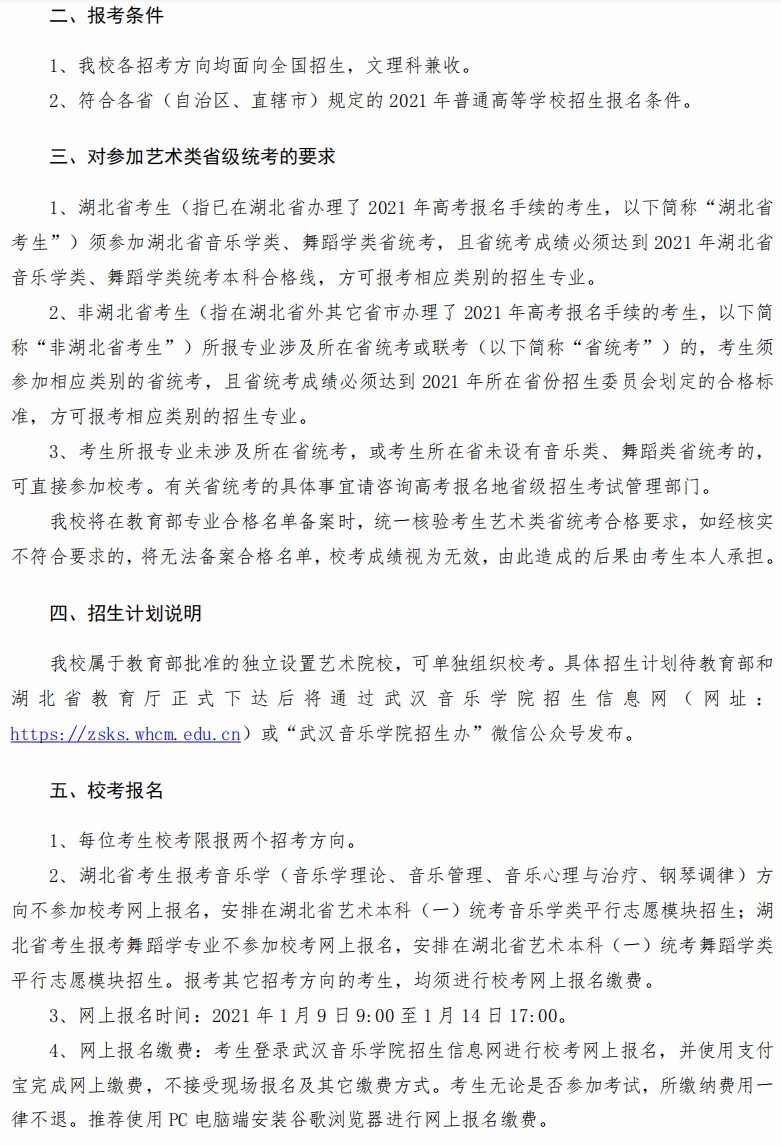 武汉音乐学院2021年本科招生简章vZ7音乐培训_音乐艺考培训学校-