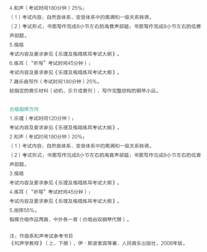 3.作曲与作曲技术理论专业作曲方向《演唱自选民歌或戏曲片段两首》中的两首作品均为清唱,不得加任何伴奏。