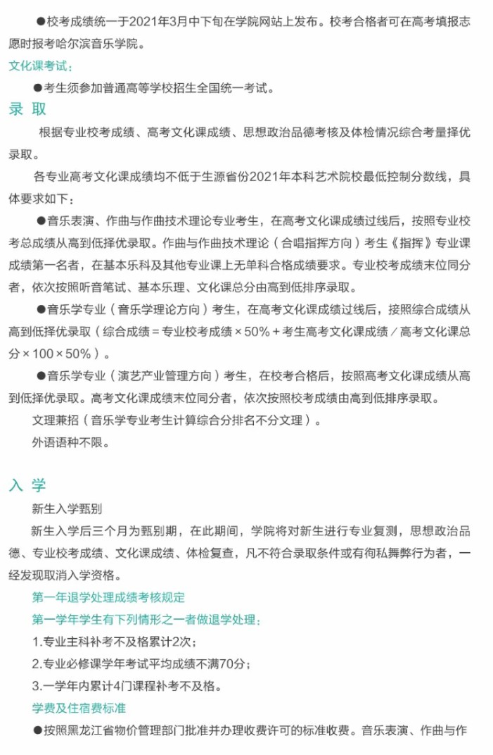 哈尔滨音乐学院2021年本科招生简章(附初试考试安排)