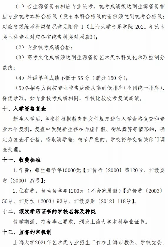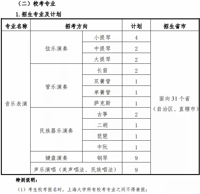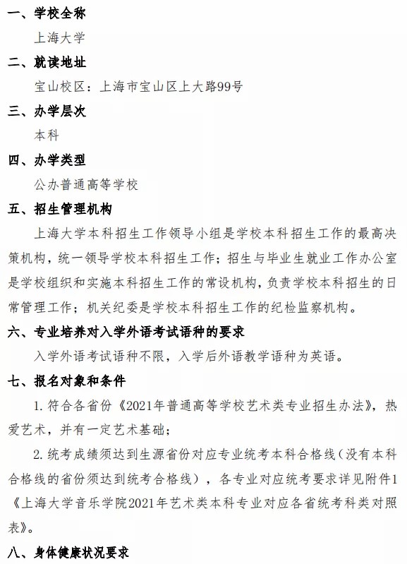 上海大学2021年音乐类招生简章