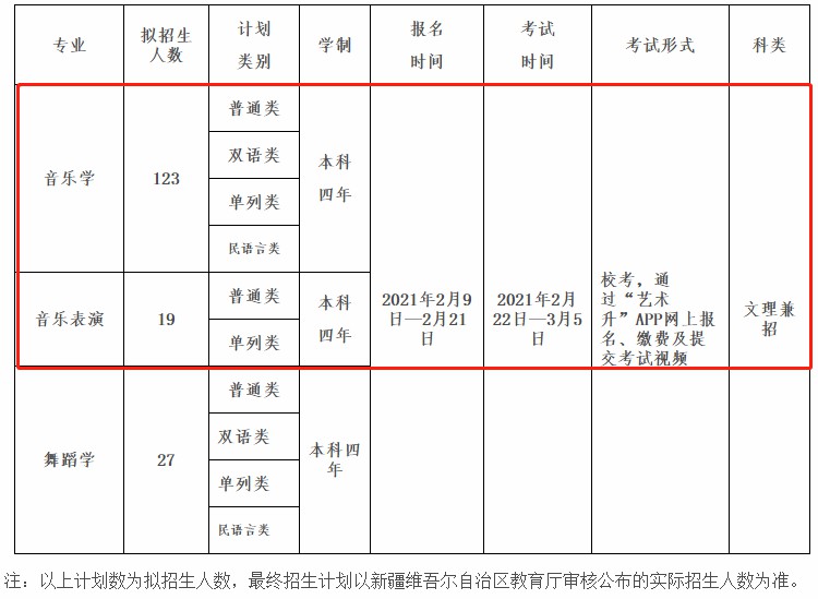 (二)符合自治区教育考试院规定的音乐类、舞蹈类专业报考及录取要求。