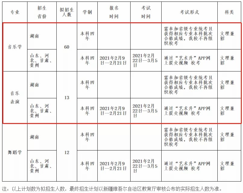 音乐学、音乐表演、舞蹈学专业:在安全、公平、公正的前提下,将采取“网络提交作品(视频),考评分离”的考试方式。经学校研究,决定采用“艺术升”APP〔教育移动互联网应用程序备案(备案号:教APP备3300041 )〕网络考试形式进行专业校考。