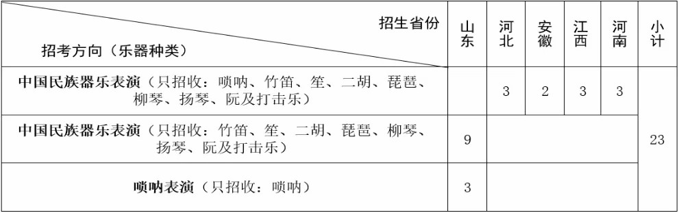 注:2021年,中国民族器乐表演方向在山东省分中国民族器乐表演和唢呐表演2个方向招生,请仔细对照具体的招考方向与计划数量。