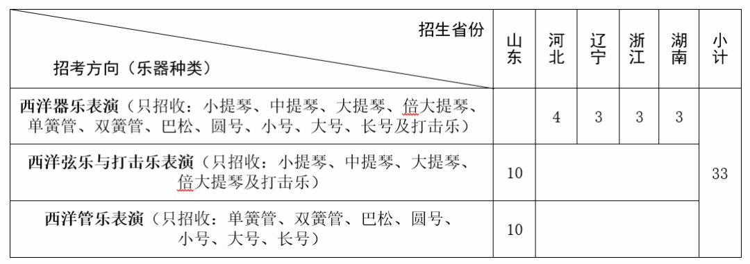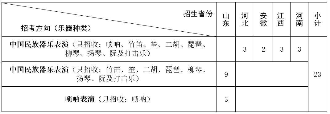 注:2021年,民族器乐方向在山东省、河南省分民族器乐、唢呐2个方向招生,请仔细对照具体的招考方向与计划数量