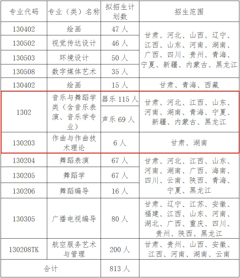 2021年学校艺术类各专业拟计划招生813人。