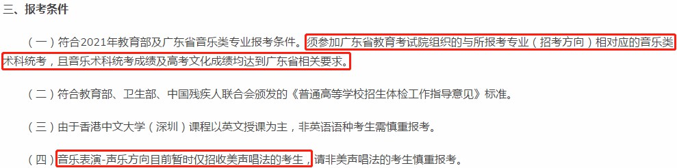 2021年香港中文大学(深圳)音乐学院首年启动招生,拟面向广东省招收届音乐类本科生,只招收音乐表演(声乐)、音乐表演(钢琴)、音乐表演(小提琴)三个小专业。