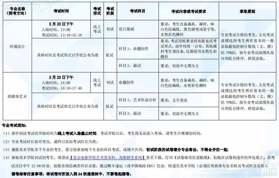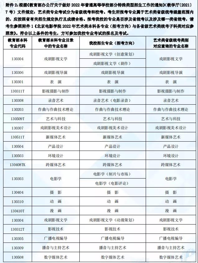 北京电影学院2022年本科招生简章