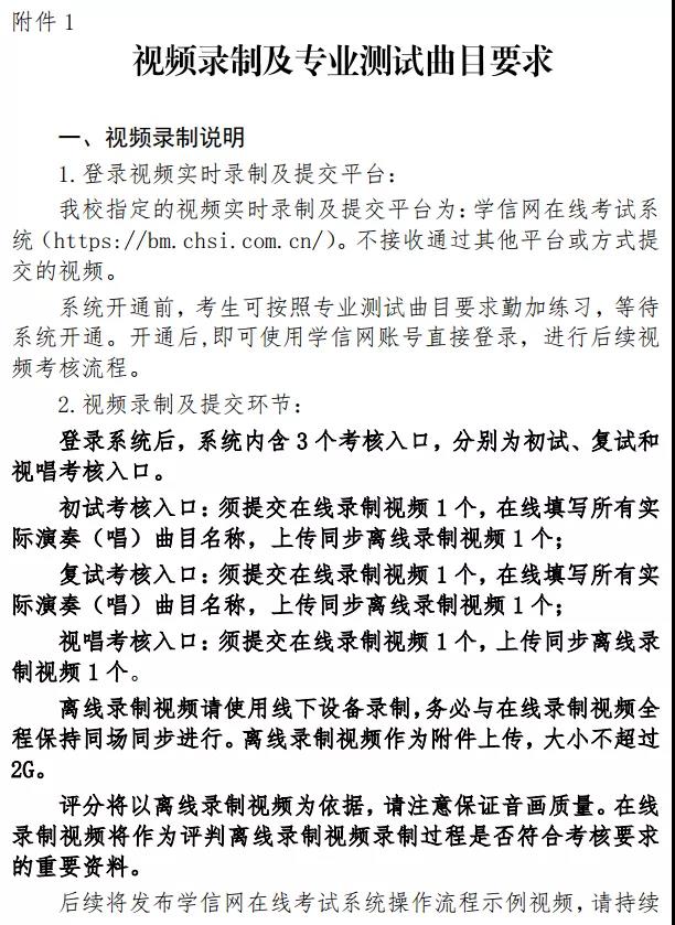 请务必仔细阅读视频录制及专业测试曲目要求(详见附件),严格按要求执行。