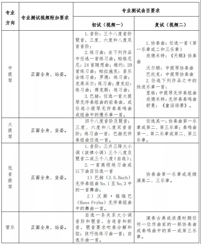 3.报考小提琴专业的考生可以兼报中提琴。