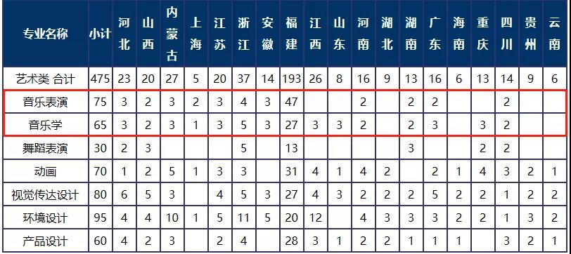 1.我校面向全国招收非师范艺术类专业考生,其中音乐学专业只招收钢琴和声乐方向的考生,音乐表演专业不招收古琴、口琴、巴乌和陶笛方向的考生,舞蹈表演专业不招收体育舞蹈和健美操专业的考生。