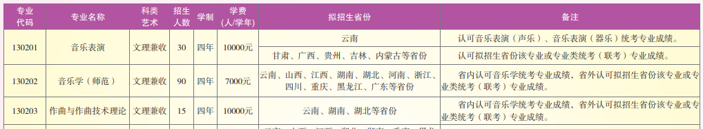 云南师范大学2022年音乐类招生简章