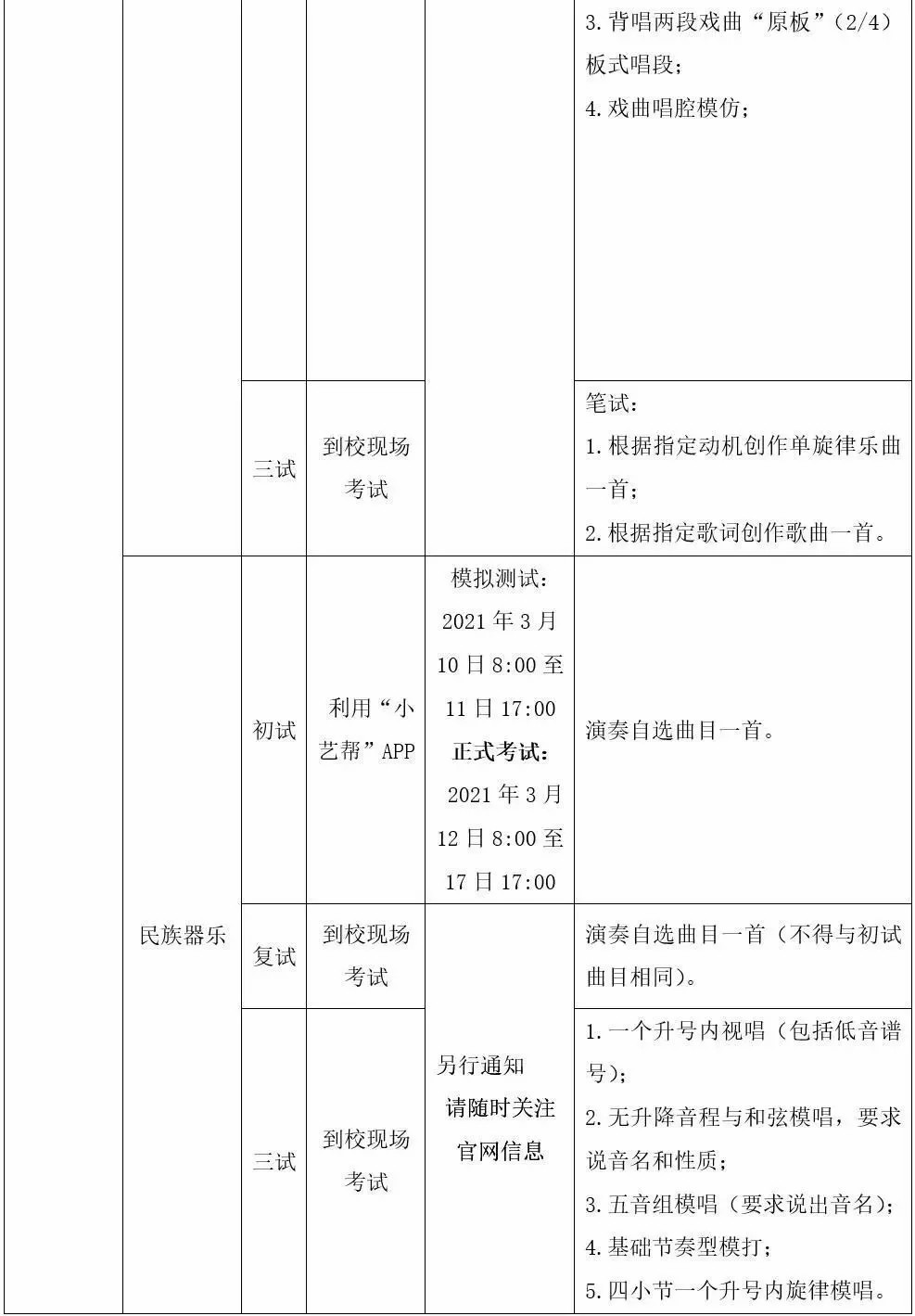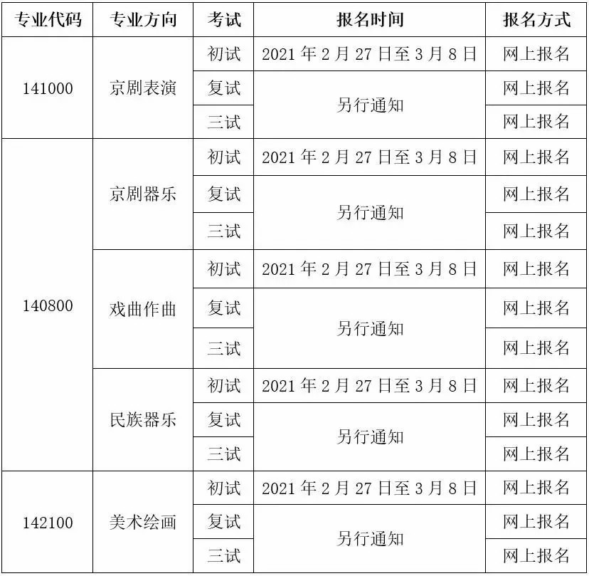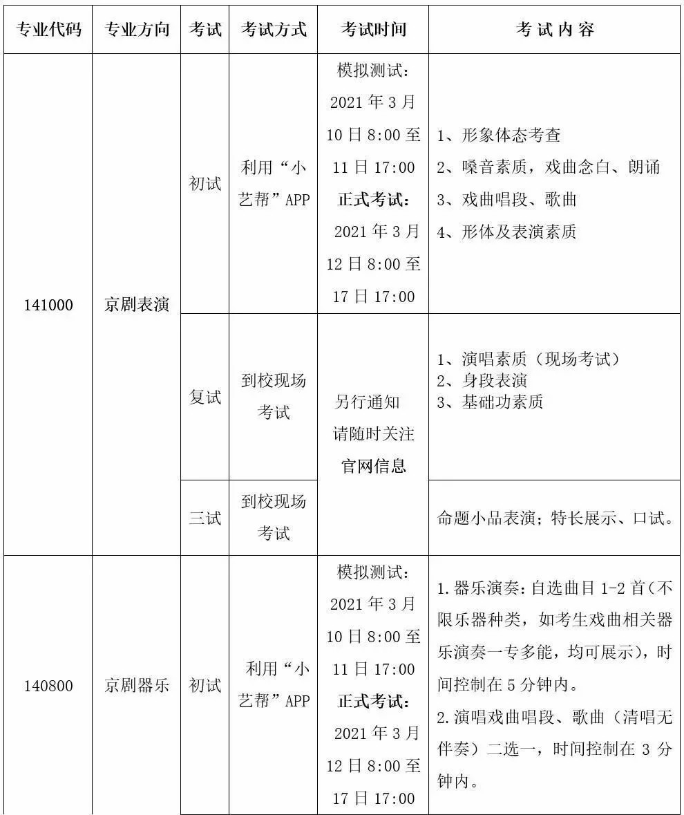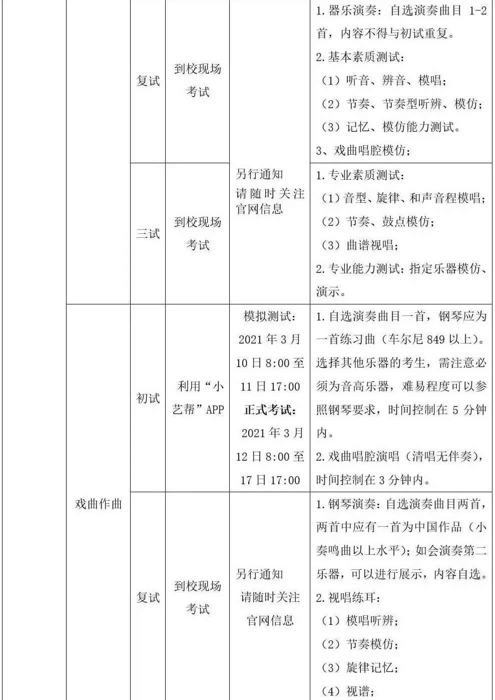 3.戏曲表演、京剧器乐、戏曲作曲、民族器乐、美术绘画专业的考生经过初试评选合格后,均参加复试、三试、体检。