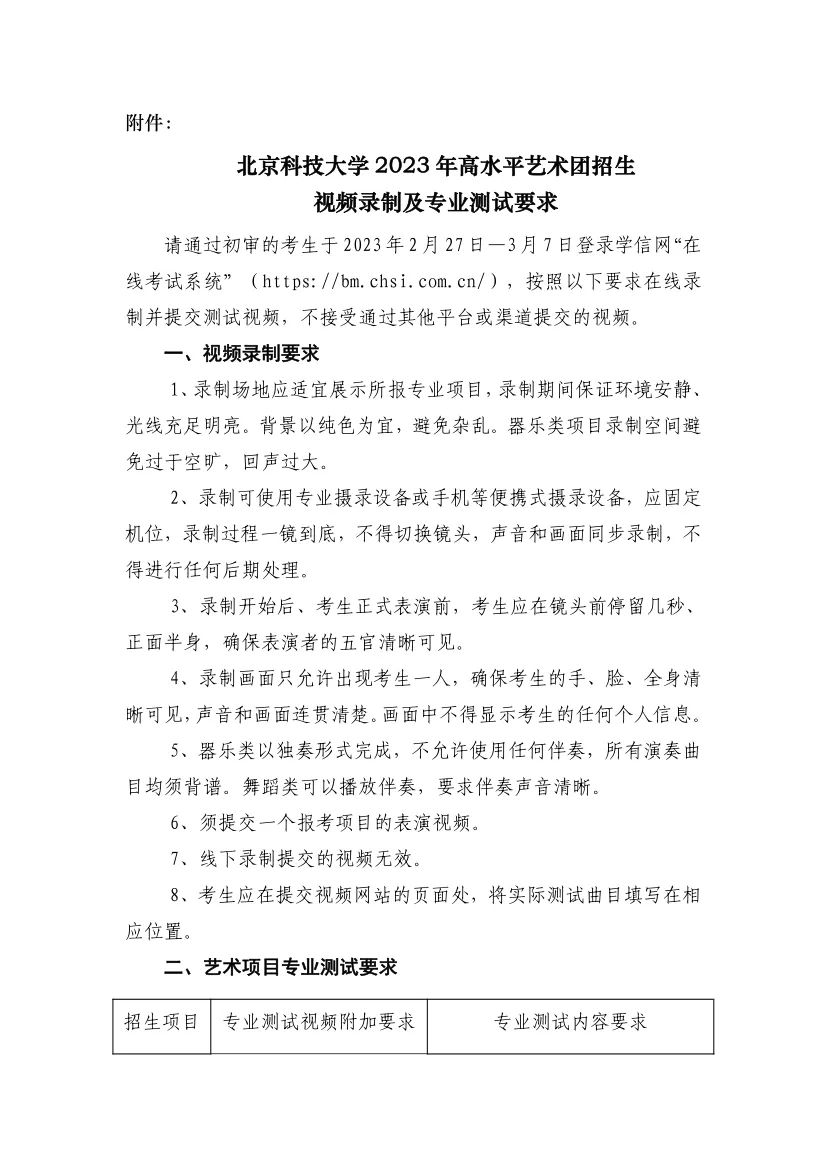 附件:北京科技大学2023年高水平艺术团招生视频录制及专业测试要求
