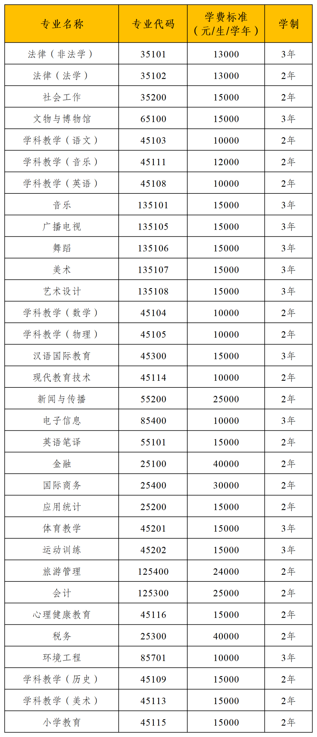 (二)研究生在学期间学费标准与内地(祖国大陆)考生相同,博士研究生学费标准为10000元/年,按学年交纳。学术型研究生学费标准为8000元/年,按学年交纳。专业学位硕士学费标准见下表: