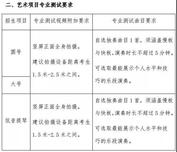 (三)如生源地省级招生考试机构组织高水平艺术团统一测试,考生须高水平艺术团统测且成绩合格,否则认定资格无效。若我校报名时间截止前统测未出结果,可先行报名参加我校高水平艺术团测试,待统测成绩出来后,再补测试合格证明即可。未统一组织高水平艺术团测试的省(区、市)生源,可直接参加我校高水平艺术团报名测试。