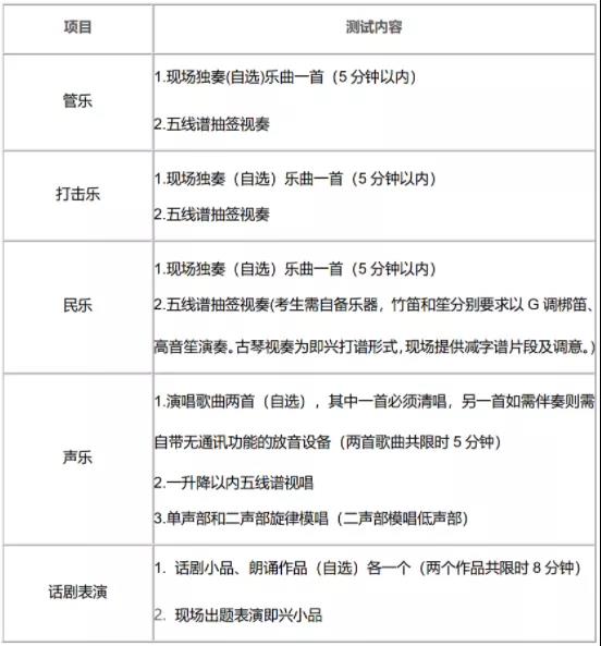 测试时间及安排:详见艺术水平测试准考证。