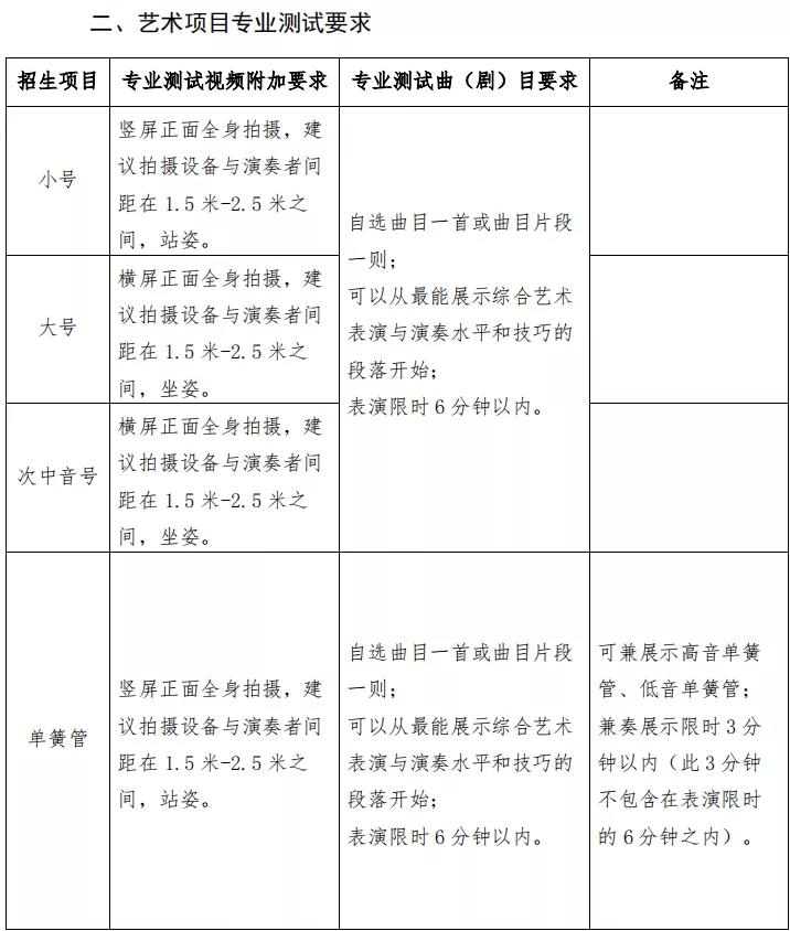 2.考生要求取得业余九级及以上等级证书或高中阶段有参加艺术团经历。