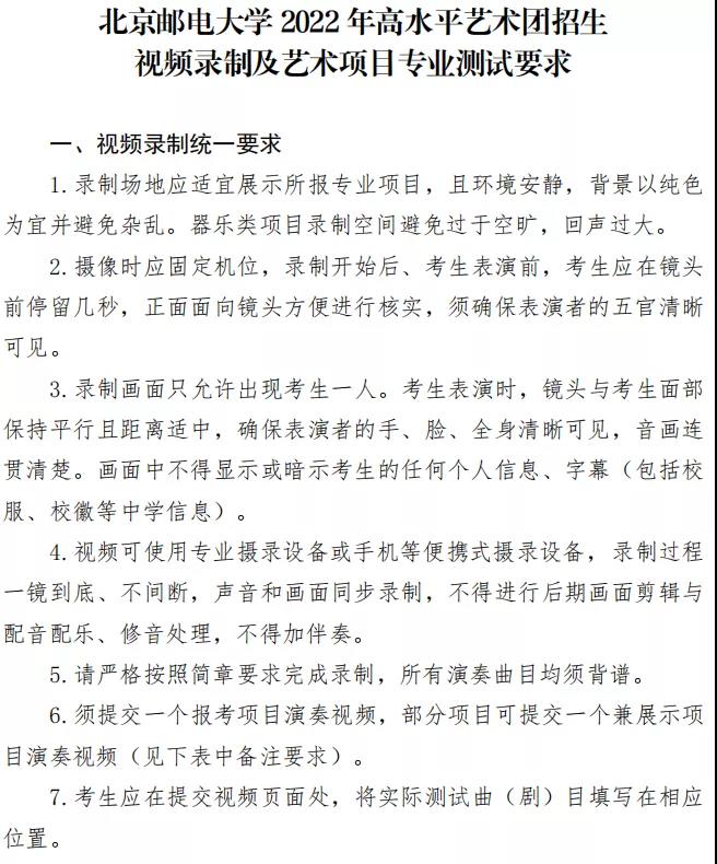 根据教育部有关规定,北京邮电大学高水平艺术团2022年将继续面向全国招收艺术特长生,现将有关规定通知如下: