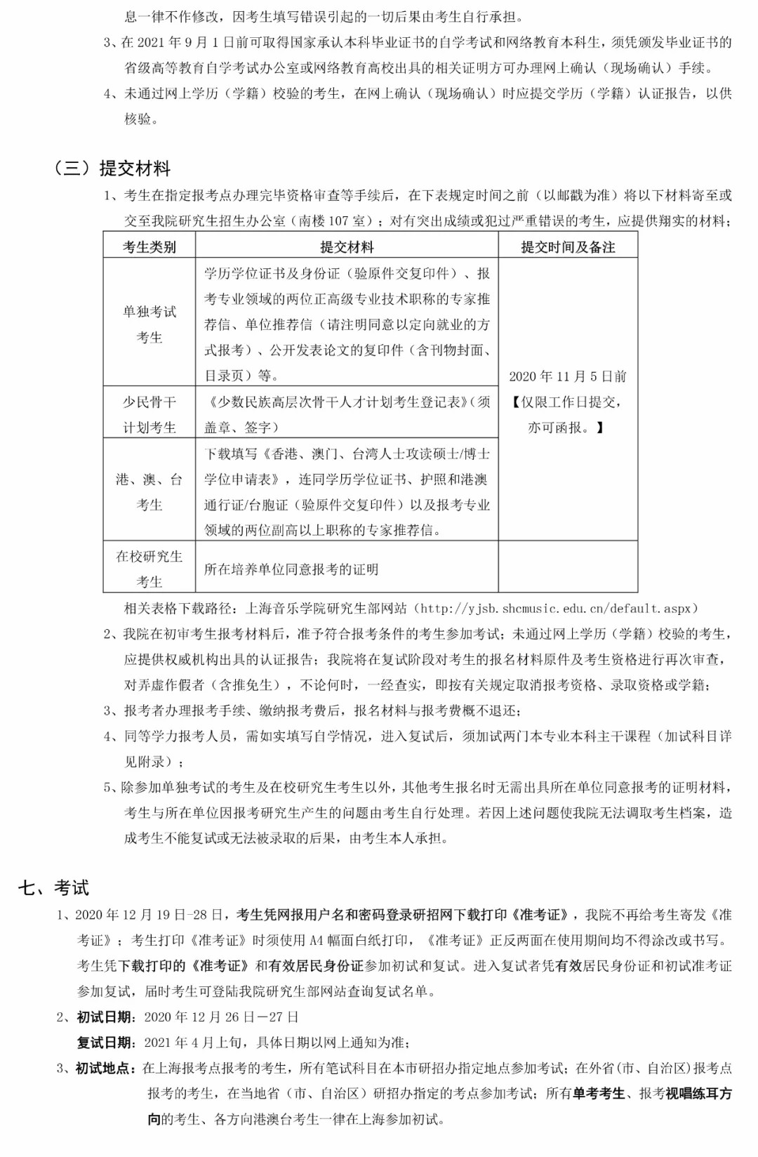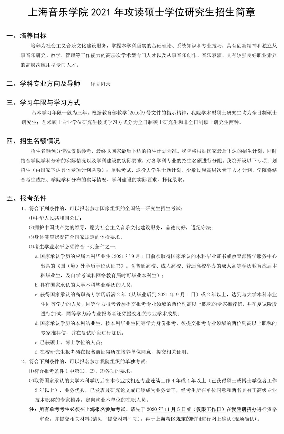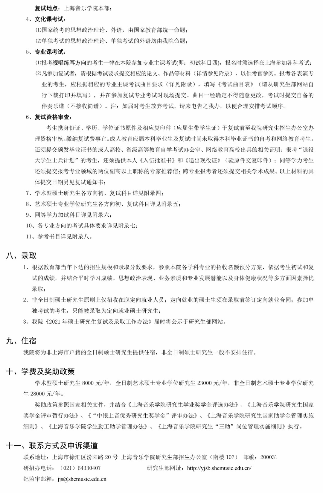 上海音乐学院2021年硕士研究生招生简章