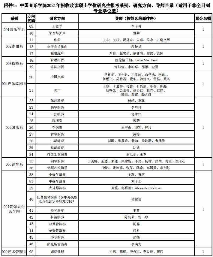 中国音乐学院2021年非全日制硕士研究生招生简章